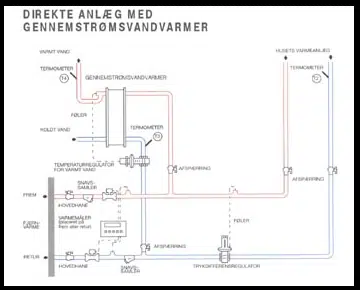 Temperaturen på termometer (T4) bør ved forbrug af varmt vand være 45-50 grader C. Temperaturen på termometer (T3) bør være omkring 30 grader C eller gerne lavere.